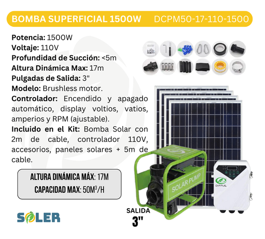 Bomba Solar Superficial 3" 17m 110V-1500W