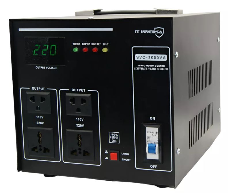 - AJUSTE INTELIGENTE: CUANDO EL VOLTAJE ES INESTABLE, EL ESTABILIZADOR DE VOLTAJE SE AJUSTA AUTOMATICAMENTE ATRAVES DE SUS SISTEMA SERVO-MOTOR PARA RESOLVER EL PROBLEMA DE INESTABILIDAD DE VOLTAJE, DANDO UNA SALIDA DE VOLTAJE ESTABLE DE 110V A 220V.